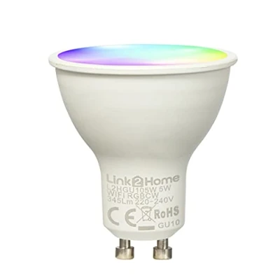 Link2Home GU10/60W Equivalent WiFi LED Lamp, Smart Light Bulb with RGB Multicolour Settings Dimmable Alexa and Google Voice Control