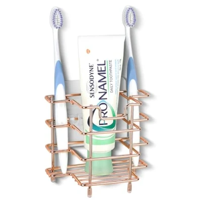 Linkidea Wall Mount Toothbrush Holder for Shower, Stainless Steel Tooth Brush Stand, Wallmount/Countertop 3 Slots Organizer Compatible with Colgate Extra Clean, Oral B CrossAction (Rose Gold)