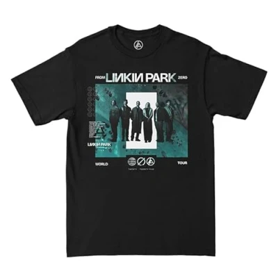 Made with 100% US Cotton Classic unisex fit with timeless crew neck Features teal band portrait with futuristic graphic elements, "From Zero" text and "World Tour 2" captions on front Official Linkin Park merchandise