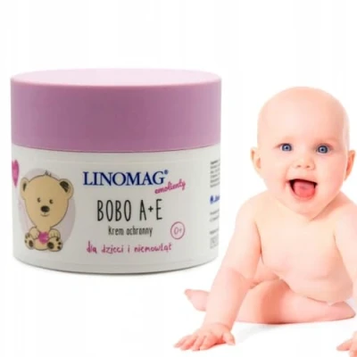 LINOMAG BOBO A + E cream for children and infants day-to-day skin care. It is suitable from birth onwards LINOMAG BOBO A+E protective cream is a perfect blend of vitamin F derrived from linseed oil with vitamins A and E, as well as hypoallergenic lanolin. LINOMAG BOBO A +E is recommended for sensitive, dry and scally skin of children as well as for prone to irritations skin of Mom and Dad. soothes, hydrates and softens the skin; protects from irritations and overdrying; lowers the alkalizing influence of soaps; protects the skin from cracking and itching; easily spreads and absorbes quickly; allows the skin to breathe The cream gently emoliates, hydrates and softens the skin. It is a non-greasy formulation which absorbes quickly. It protects the skin from irritants and bad wheather conditions. Directions for use: gently spread on the skin surface
