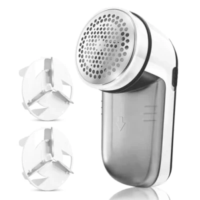 ✅ FREE EXTRA BLADE INCLUDED: Sharp and durable blades that last for years and are easily replaceable, Package comes with 1 extra blade included, the expanded blade surface covers a larger area, finishing the job quickly with less effort ✅ REVIVE YOUR OLD GARMENTS: Suitable all types of garments and fabrics, easily remove pills, fuzz & bobbles for sweaters, jerseys, blankets, bed sheets, couches and much more ✅QUICK AND EFFICIENT: Our electric fabric shaver carries a powerful dual electric motor, fuelling the three sharp edged blades to enable quick and efficient de bobber for cloth.! ✅ANY FABRIC, ANYTIME: Adjustable blade height allows the sweater shaver and lint remover for clothes to eliminate pills from even the most delicate fabrics ✅FABRIC PROTECTION WITH LARGER TRASH STORAGE: Our Fabric Protector gives the best shave while protecting your clothes. Compared to other sweater shaver, the trash storage bin is larger. ✅EASY TO USE& STORE - One-button switch is really convenient to use. With its compact size and wireless operation, this lint remover is portable and perfect for travel or home use. It can be easily stowed in a drawer, suitcase or travel kit in the wardrobe. ✅WHAT’S IN THE BOX: Fabric shaver, fabric protector, 1 Extra Blade and Cleaning Brush to prevent lint buildup on the blades. 2 x AA Batteries are required to operate ( ***Batteries not included ) ✅ "I love this, how have I got so far in life without one. I've 'debobbled' most things at home now." - Phil