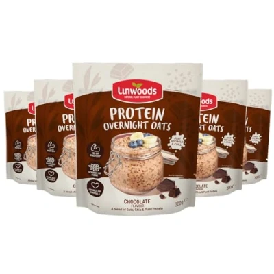 Linwoods Chocolate Protein Overnight Oats 5 x 300g Porridge Healthy Breakfast Food Vegan Friendly & Gluten Free