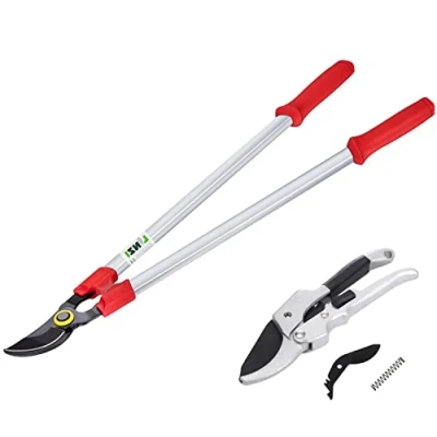 You will get a valued set of 30 Inch Bypass Loppers + 200mm Ratchet Anvil Secateurs Scissors SK5 anti-rust high carbon steel blades, strong, sharp and durable Bypass Loppers cuts all thick branches up to 35mm, perfect for cutting and trimming branches, bushes, hedges,shrubs, lawns etc Ratchet Anvil Secateurs with a cutting capacity of 18mm, can be used to cut thick branches, hard wood, twigs, and stems Lightweight gardening tool set are equipped with reinforced handles with non-slip grip end for maximun durablity and strength, Manufacturer: LINZI