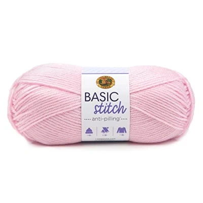Lion Brand Yarn Basic Stitch Anti Pilling for Knitting, Crochet, and Crafts, Baby Pink, 1 Pack