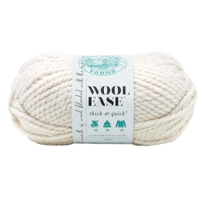 Wool-Ease Thick and Quick is the super bulky member of the Wool-Ease family; Perfect for extra warm sweaters, jackets, and hats Metallics: 79% Acrylic, 20% Wool, 1% Metallic Poly It has the feel, warmth and softness of wool with the easy care of acrylic Machine wash; Initial water temperature should not exceed 40C or 105F; Dry Clean, any solvent; No bleach product may be used Weight Category 6- Super Bulky: Solids, Heathers, Twists, Tweeds: 6 oz (170 g), 106 yd (97 m); Prints, Metallics: 5 oz (140g), 92yd (84m)