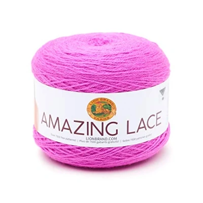 Lion Brand Yarn Company 213 146 Amazing Lace Yarn, Feather & Fan Fushia, One Skein