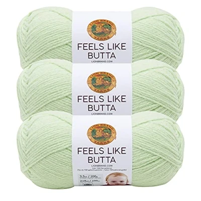 Lion Brand Yarn Feels Like Butta Yarn, Velvety Soft for Crocheting and Knitting, 3 Pack, Mint