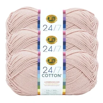 Lion Brand Yarn Lightweight 24/7 Cotton for Knitting, Crocheting, and Crafts, Beechnut, 3 Pack