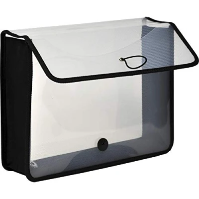 Letter size (overall dimension: 13.1 inch width x 10.2 inch height/inside dimension: 12.3 inch width x 9.7 inch height) 3 inch sturdy canvas cloth gusset Elastic band & button closure Reinforced cloth sewn edges Clear