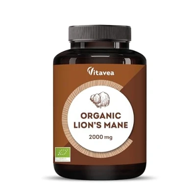 ORGANIC LION'S MANE SUPPLEMENT: Our Lion's mane supplement provides a concentrated 30:1 extract of organic Hericium Erinaceus, equal to 2000 mg of dried plant per daily serving. Enhanced with organic black pepper ( Piperine ) to support absorption EASY TO TAKE: Simply take 2 capsules daily with a meal. Each bottle contains 180 capsules – a convenient 3-month supply designed to fit easily into your daily routine. HIGH STRENGTH & PURE FORMULA: Standardised to provide at least 40% polysaccharides and beta glucan, ensuring maximum potency without unnecessary fillers, additives or artificial ingredients. NATURAL SUPPORT FOR WELLBEING: Valued as the “smart mushroom” Lion’s Mane is valued for promoting focus, memory and mental clarity while also supporting overall balance and vitality – a natural way to feel at your best every day. VITAVEA QUALITY : Developed by experts in micronutrition, Vitavea ensures premium quality supplements crafted with care and strict standards for your wellbeing.