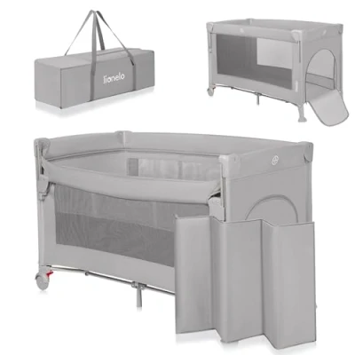 Lionelo Ellen 3 in 1 Travel Cot with 2 Height Levels Co Sleeper Drop Side Bedside Crib Playpen Zipped Entrance, Wheels Brakes, Carry Bag & Mattress from Birth to 36 Months