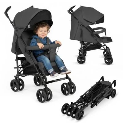 Amazon ULTRA LIGHT AND COMPACT - Only 7kg weight and quick folding system allows for easy transport and storage. Ideal for everyday use and travel with children up to 15 kg ADJUSTABLE COMFORT FOR THE CHILD – Backrest with 4 reclining positions and adjustable footrest ensure a comfortable posture for both active walks and lounging CERTIFIED SAFETY – 5-point safety harness, foot-operated rear brake and compliance with European standard EN 1888-1, certified by Intertek SMOOTH & STABLE DRIVING - 6" tubeless and maintenance-free EVA wheels with front cushioning and twist lock for comfortable riding on different surfaces Practical for parents – XXL canopy with window, spacious shopping basket, carry handle and durable materials with linen-like fabric, easy to clean and durable