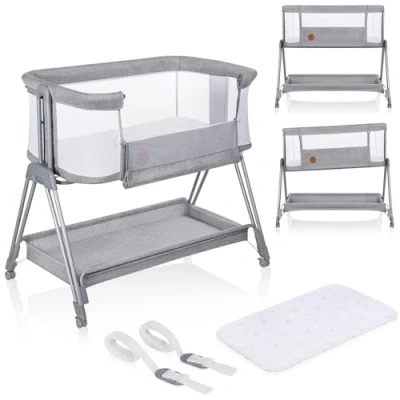 lionelo Luna 2in1 Bedside Crib for babies from Birth to 9kg with Adjustable Height & Incline 4 Lockable Wheels Portable Baby Co Sleeper Breathable Mesh Washable Mattress Cover Basket