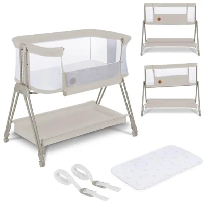 lionelo Luna 2in1 Bedside Crib for babies from Birth to 9kg with Adjustable Height & Incline 4 Lockable Wheels Portable Baby Co Sleeper Breathable Mesh Washable Mattress Cover Basket