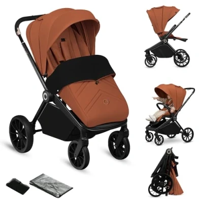 ALL-TERRAIN COMFORT: Puncture-proof PU wheels (20/27 cm) with front & rear suspension smooth out kerbs, cobbles and gravel; lockable 360° front wheels ensure stability and easy manoeuvring. REVERSIBLE LIE-FLAT SEAT: Parent- or world-facing with multi-position recline to full lie-flat and 4-position footrest; 5-point harness with magnetic buckle keeps little ones secure and comfortable. WEATHER-READY XXL CANOPY: Water-repellent UPF50+ hood with ventilation and side wind panels protects from sun, drizzle and wind while preventing overheating for year-round outings. LIGHTWEIGHT & COMPACT FOLD: Robust aluminium frame weighs just 10.9 kg; folds small with the seat attached and includes a shoulder strap for easy carrying and storage. PARENT-FRIENDLY DESIGN: Large, easy-access shopping basket with bottle pocket; adjustable handlebar (3 positions); premium fabrics. Includes rain cover, footmuff and mosquito net.