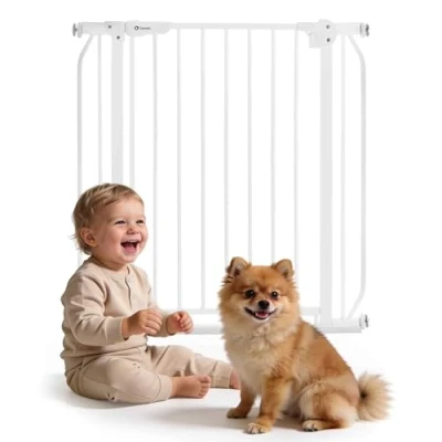 SIMPLE, DRILL-FREE INSTALLATION: Pressure fixing offers a quick, easy setup without the need for drilling or damaging walls - ideal for busy UK parents on the go. WIDE ADJUSTABLE WIDTH: Perfectly accommodates openings from 75 cm to 105 cm, ensuring a custom fit for diverse doorways, hallways, and stairways in your home. ENHANCED SAFETY DESIGN: Dual-opening for effortless movement and a self-locking mechanism for extra security - your child's safety guaranteed at all times. DURABLE, HIGH-QUALITY CONSTRUCTION: Built with premium materials, featuring a robust metal frame and reliable self-locking system for sustained performance. CHILD-SAFE HAVEN GUARANTEE: With a comfortable height of 77 cm, the LIONELO Truus Slim Safety Gate offers a secure shield, promoting your peace of mind while your toddler explores in a safe and protected environment.