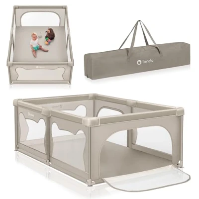Lionelo Willow Baby Playpen Foldable & Portable, Large 127x187x68 cm Safe Play Yard, Steel Frame with Padded Edges, Breathable Mesh Walls, 2 Zip Doors, Easy Fold Design, Carry Bag, Toddlers 0 4 Years