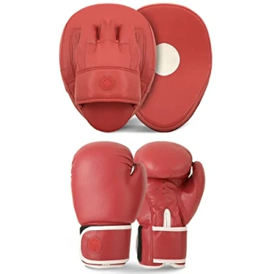 FOCUS PADS AND GLOVES SET - Providing excellent comfort and protection, our gloves are perfect for a variety of martial arts practices like boxing, kickboxing, Muay Thai, sparring and punch bag exercises. Can be used in MMA training in conjunction with hand wraps. COMFORTABLE AND DURABLE- Extra-thick, shock-resistant PU foam is soft and provides exclusive thumb support. Our adjustable wrist straps are widened in order to add more stability and security. BREATHABLE AND HYGENIC- Our Sparring Set range contain air or mesh ventilation panels in the palm in order to insure sweat and outdoor free training. By maintaining air flow through the hand, our gloves reduce perspiration and keep away bacterial. EXTRA PROTECTION- Exclusive thumb lock feature for added thumb protection to prevent thumbs from getting injured by turning outward along with extra-thick shock-proof foam knuckle pads. Our extra wide wrist straps ensure the glove will not slip around on the hand. COMES AS PAIR | Boxing Gloves and Focus Mitts- Perfect Subtitide To Big Shields. Advantages Of these Focus Mitts Are A Lot-Lightweight Easy to Maneuver, Trainer Can Help You Increase Your Pace/Speed, Perfect Grip, Air vent , Traditional Curved Design & Much More. Our gloves comes in many different sizes 6oz, 8oz, 10oz, 12oz, 14oz and 16oz.