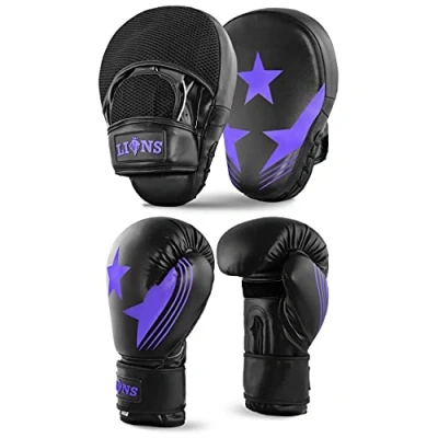 Lions Star Boxing Gloves and Pads Set for Men Women, Pair of with Hook Jabs Mitts Focus Pads, Punching Sets Ideal Punch Bag MMA Martial Arts (Purple, 10oz)