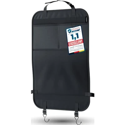 PROTECTS YOUR CAR EFFECTIVELY - You will receive a backrest protector made of 100% waterproof fabric to reliably protect your car seats QUICK INSTALLATION AND REMOVAL – Simply attach the click fastener to the headrest, then the middle click fastener and then the two metal hooks under the seat. UNIVERSAL FIT - From small cars to SUVs: The LIONSTRONG back seat organizer is compatible with all common vehicle models. EASY TO CLEAN - You can clean the LIONSTRONG rear seat protector quickly and easily, a damp cloth is enough to quickly remove dirt, lightning-fast drying included Size: 1 piece