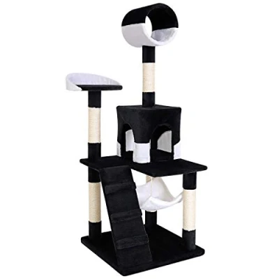 lionto dibea Cat Tree Activity Centre Sisal Climbing Toy, 133 cm, Black/White