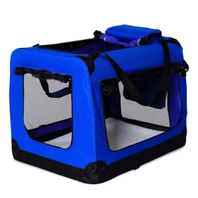 lionto dog transport box foldable for travel & car, 90x61x65 cm, sturdy with carrying handles blanket cats dogs up to 22 kg, fabric small large, blue