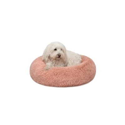 lionto Donut bed for dogs and cats, fluffy round dog small large pets, Ø 50cm, Inside lying surface 30cm, soft cat made of cuddly plush, cushion with thick filling, pink