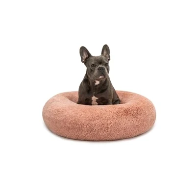 lionto Donut bed for dogs and cats, fluffy round dog small large pets, Ø 70 cm, soft cat made of cuddly plush, cushion with extra thick filling, pink