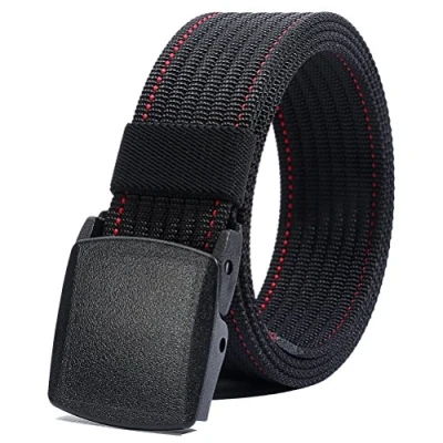 BEST CHOICE FOR SPROTS & TRAVEL: This plastic belts for men makes with lightweight and wear-resisting nylon material that has a strong evaporation of sweat, more comfortable and breathable, feel more flexible, EASY TO DRY IN AIR FOR OUTDOOR SPORTS. ◆The buckle does not contain any metal components, free to pass through airport security check for travel. HIGH STRENGTH STRAP: 100% special pure nylon belt, corrosion resistance and oxidation resistance, total length is 53.15"/135cm, strap width is 1.5"/3.8 cm,strap thickness is 2.8 mm(◆the strap twice as strong as the seat belt of the car) INTERNATIONAL STANDARD YKK BUCKLE: Top quality plastic belt buckle made of high strength polyacetal, can withstand the weight of 150lb.(◆This non-metallic buckle for easy, quick clearance at security checkpoints.) FULLY ADJUSTABLE FOR YOUR SIZE: You can precisely adjust your belt to the perfect fit. Automatic Buckle,no holes in belt. ◆If the Strap is too long for you, you can trim the strap length to fit your own size. ◆This Nylon Belt Is Suitable for Pant Size Below 49inches Such as 32- 49in. APPLICABLE SCENE: Nylon material belt,worn for four seasons,can be used with shorts /jeans/cargo trousers,ideal for outdoor sports and travel. ◆Will be a nice gift for men,husband,boyfriend,father,son.