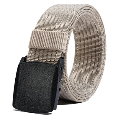 BEST CHOICE FOR SPROTS & TRAVEL: This plastic belts for men makes with lightweight and wear-resisting nylon material that has a strong evaporation of sweat, more comfortable and breathable, feel more flexible, EASY TO DRY IN AIR FOR OUTDOOR SPORTS. ◆The buckle does not contain any metal components, free to pass through airport security check for travel. HIGH STRENGTH STRAP: 100% special pure nylon belt, corrosion resistance and oxidation resistance, total length is 53.15"/135cm, strap width is 1.5"/3.8 cm,strap thickness is 2.8 mm(◆the strap twice as strong as the seat belt of the car) INTERNATIONAL STANDARD YKK BUCKLE: Top quality plastic belt buckle made of high strength polyacetal, can withstand the weight of 150lb.(◆This non-metallic buckle for easy, quick clearance at security checkpoints.) FULLY ADJUSTABLE FOR YOUR SIZE: You can precisely adjust your belt to the perfect fit. Automatic Buckle,no holes in belt. ◆If the Strap is too long for you, you can trim the strap length to fit your own size. ◆This Nylon Belt Is Suitable for Pant Size Below 49inches Such as 32- 49in. APPLICABLE SCENE: Nylon material belt,worn for four seasons,can be used with shorts /jeans/cargo trousers,ideal for outdoor sports and travel. ◆Will be a nice gift for men,husband,boyfriend,father,son.