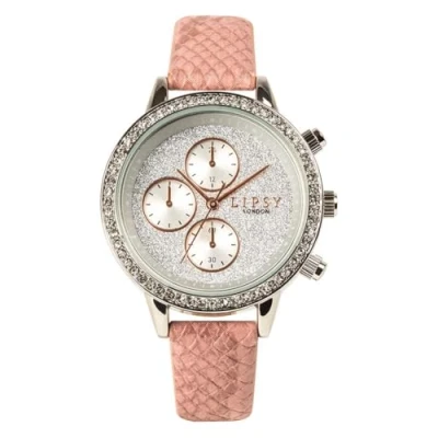 Lipsy Pink Croc Effect Strap Watch with Silver Glitter Dial and Stone Set Bezel