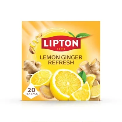 Lipton Lemon Ginger Refresh Fruit Infusion Herbal Tea Bags, 20 Plant Based Pyramid Caffeine Free, Natural Flavours.