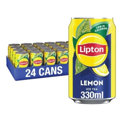 Lipton Lemon Ice tea Can 330 ml (Pack of 24), low calorie soft drink, 100% black extract