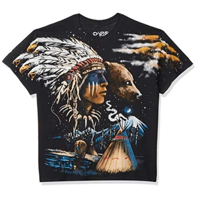 Liquid Blue Men's Indian Bear T Shirt, Black, Large