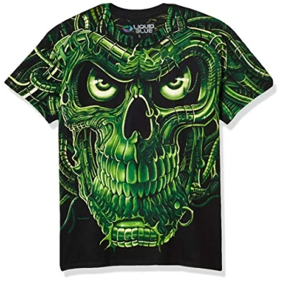 Liquid Blue Men's Terminator Skull T Shirt, Black, XL