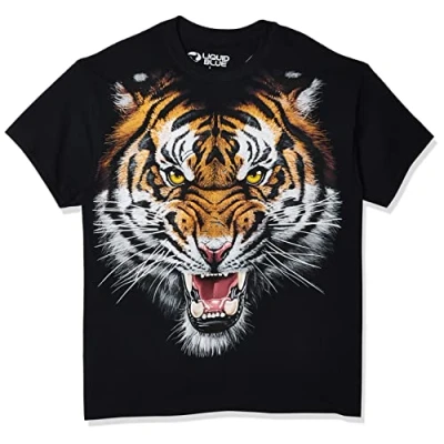 Liquid Blue Men's Tiger Face T Shirt, Black, XXL