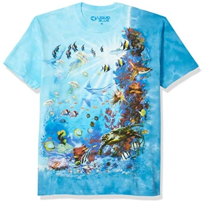 Liquid Blue Men's Tropical Reef T Shirt, Tie Dye, XL