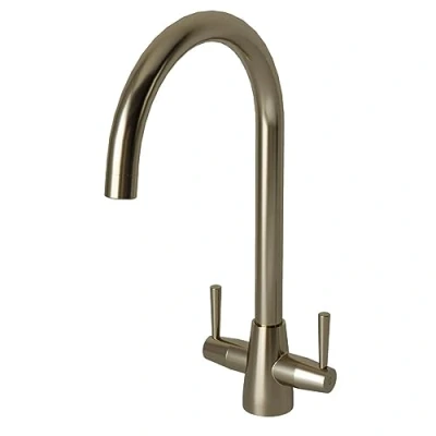 Liquida LU405BS Monobloc Swan Neck Twin Lever Brushed Steel Kitchen Mixer Tap
