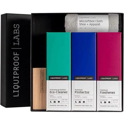 Liquiproof LABS Complete 125 Gift Box Shoe Care Kit with a Premium Protector, Eco Cleaner, Freshener, Vegetable Fibre Brush and Microfibre Cloth Set for shoes, sneakers trainers