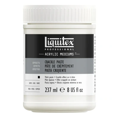 Liquitex Professional Crackle Paste – 237ml. Create dramatic, textured surfaces with Liquitex Professional Crackle Paste. This flexible acrylic medium forms deep fissures as it dries, making it ideal for adding aged, weathered, or sculptural effects to your artwork.. Volume: 237ml. Texture: Produces natural-looking cracks for rich surface detail. Application: Can be used on rigid supports; apply thickly for best crackle results. Finish: Matte and opaque when dry. Mixability: Can be tinted with acrylic color or painted over once dry. Use: Ideal for mixed media, collage, and dimensional layering. Perfect for artists who want to experiment with surface texture and add expressive detail to their acrylic work.