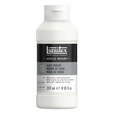 Liquitex Professional Glass Medium – 237ml. Transform your acrylic paints into vibrant, glossy finishes on non-porous surfaces with Liquitex Professional Glass Medium. This specialized medium enhances adhesion and durability, making it ideal for glass, ceramics, and porcelain projects.. Volume: 237ml. Finish: Dries to a high-gloss, scratch-resistant surface when heat-cured. Adhesion: Improves paint adherence to slick, non-absorbent surfaces. Flow: Provides a smooth, non-drip consistency for even application. Drying Time: Slows drying to allow for subtle color blending. Durability: Permanent, non-yellowing, flexible, and water-resistant when dry. Usage Instructions:. Mix with acrylic paint at a ratio of up to 10% paint to 90% medium. Apply to clean, dry, non-porous surfaces. Allow to dry completely before curing. Heat set in an oven at 150°C (300°F) for 30 minutes to achieve a durable, glossy finish. Compatible with all Liquitex acrylic paints and mediums, this glass medium is perfect for artists and crafters aiming to achieve professional-quality finishes on glass and ceramic artworks.