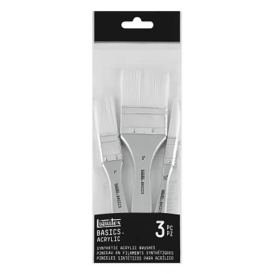 Liquitex Basics Synthetic Brush Set – 3 Piece. This versatile three-piece synthetic brush set is designed for artists working across a wide range of acrylic painting techniques. Featuring soft yet durable synthetic bristles, these brushes are perfect for priming, laying backgrounds, mural work, and applying smooth layers of paint.. Fine synthetic bristles: Ideal for smooth applications and precise control. Multi-purpose use: Suitable for priming, base coats, backgrounds, and detailed painting. Durable and easy to clean: Maintains shape after repeated use. Set includes 3 flat brushes: ½", 1", and 2". Whether you're working on canvas, wood, or walls, this brush set delivers professional results for both beginner and experienced acrylic artists.