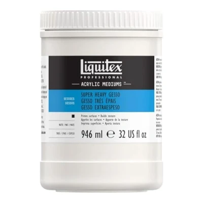 Liquitex Super Heavy Gesso is a professional-grade acrylic primer designed to create an extra-thick, highly textured surface for painting. Its dense, opaque formula provides exceptional coverage and grip, making it ideal for building dramatic texture and preparing a variety of surfaces.. Extra-Thick Consistency: Ideal for creating highly textured surfaces with palette knives or brushes.. Superior Coverage: Provides a strong, opaque base that enhances paint adhesion and color vibrancy.. Flexible & Crack-Resistant: Dries to a durable, non-brittle finish that resists peeling or cracking.. Multi-Surface Use: Works on canvas, wood, paper, and other primed or unprimed surfaces.. Customizable & Mixable: Can be tinted with acrylics for a custom-colored ground.. Perfect for artists who want a bold, textured foundation, Liquitex Super Heavy Gesso offers superior strength and depth for expressive painting techniques.