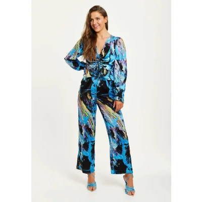 Liquorish Abstract Print WITH Ruched Front Jumpsuit, Women's, Size: 12, Multi coloured