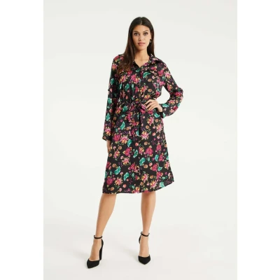 Liquorish Floral Print Shirt dress, Women's, Size: 14, Black