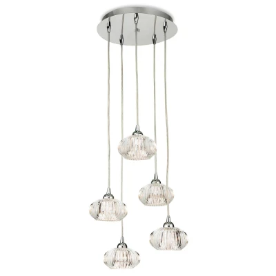 Lisbon 5 Light Cluster Pendant Chrome, Clear Decorative Glass, G9