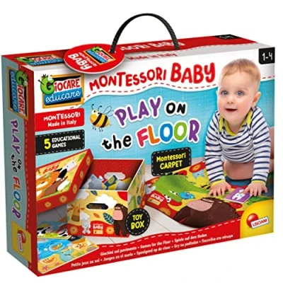 Lisciani 92796 Giochini Sul Pavimento, Montessori Baby 5 Educational Game Box + Carpet
