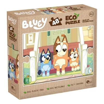 BLUEY CHILDREN'S PUZZLE: Give your child the opportunity to reconstruct scenes from their favourite cartoon with this Bluey children's puzzle designed to stimulate attention and independent play while exploring recognisable visual adventures. DOUBLE-SIDED COLOURING PUZZLE: This double-sided Bluey jigsaw puzzle adds an original children's colouring activity to the back of the puzzle once it's completed to extend the fun experience and boost creativity while reusing the pieces interactively. CHILDREN'S COLOURING ACTIVITY: After completing the Bluey puzzle, children can colour in the black-and-white scene printed on the back of the tray for a rewarding children's colouring activity that encourages the imagination and artistic sense. 4 YEARS EDUCATIONAL PUZZLE: Designed for children aged 4 and over, this 48-piece 4 years educational puzzle measures 35x25 cm and helps to develop hand-eye coordination, fine motor skills and observation skills in a fun and progressive way. BLUEY EDUCATIONAL DEVELOPMENT GAME: This Bluey educational game helps children to develop essential skills such as curiosity, decoding images, creativity and imagination through stimulating play., Manufacturer: Liscianigiochi Italy