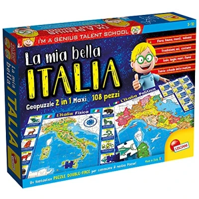 A double puzzle face to discover Italy with multimedia extensions with the great online game, maxi puzzle 50x70cm Maxi double sided puzzle Learning of physical and political geographical notions, logic development, observation, notions about man and the environment, Manufacturer: LISCIANIGIOCHI