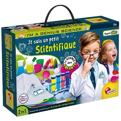 FOR KIDS: A science kit designed especially for children 5 years and up SCIENTIFIC EXPERIENCES: Many easy and child-friendly scientific experiments. Even the instruments in the kit are in a larger format and easier to manage! IMITATION GAME: In addition, inside you will also find the scientist's blouse with his badge. A kit to become real junior scientists! Contents: This kit contains test tubes, a test tube holder, a graduated beaker, a graduated bulb, tweezers, pipettes... and many other instruments EDUCATIONAL GAME: This game allows you to make scientific experiments, learn physics and chemistry, observe, develop imagination and creativity, Manufacturer: Lisciani